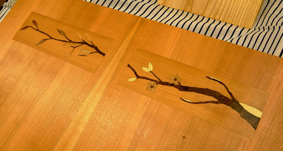 "We love how the sun casts a shadow of a tree branch outside the window on the floor, right where there should be a coffee table. Inspired by this, the table has inlay marquetry of a tree branch as it transitions through the four seasons.